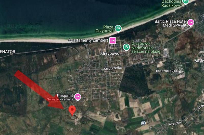 Działka zlokalizowany w nadmorskiej miejscowości Mielenko, Gm. Mielno, ok. 800 m od morza (w linii prostej);